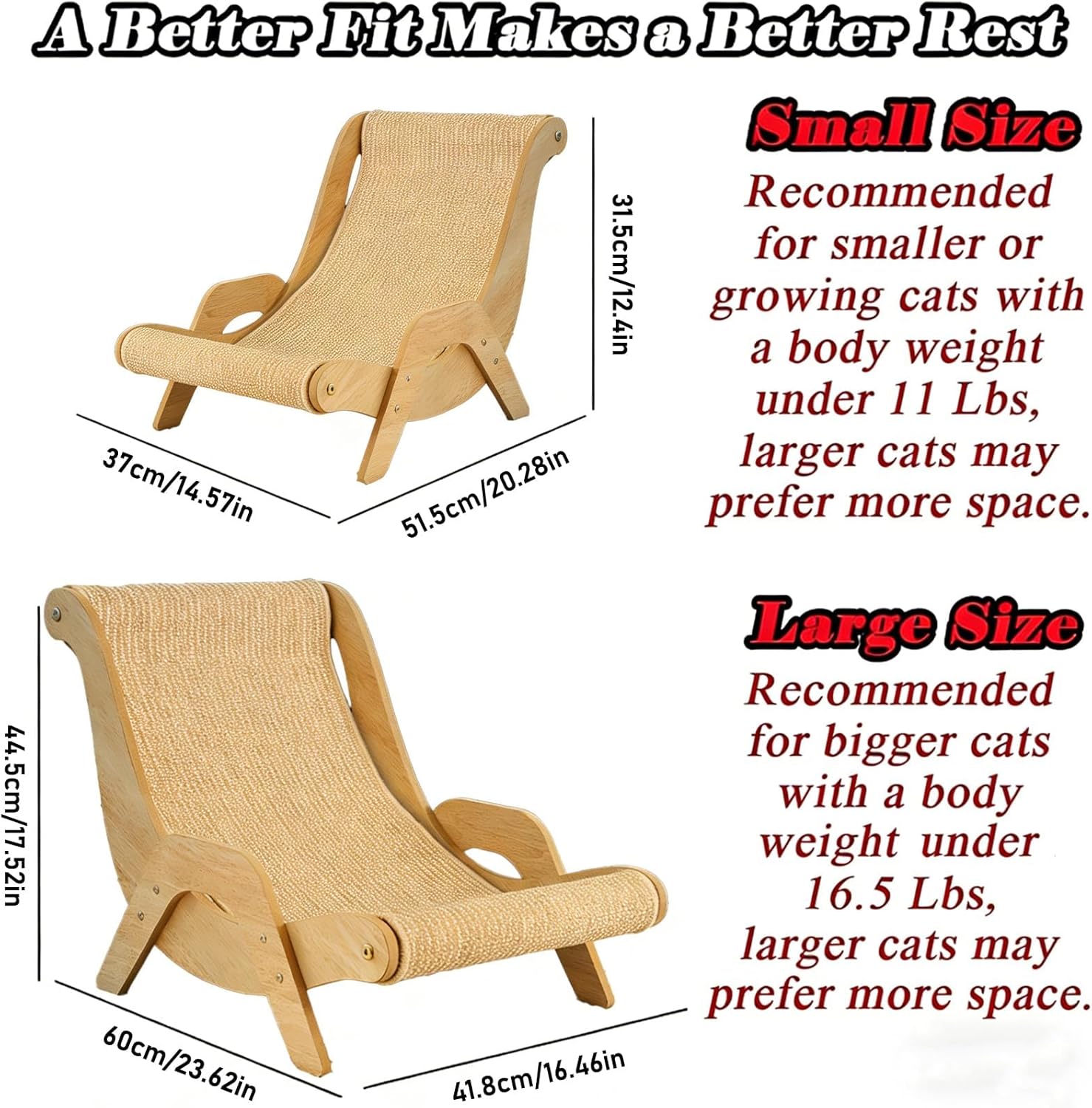 Still worried about your cat scratching your furniture? This two-in-one cat scratching and lounging chair combines scratching and resting, conforms to your cat's natural posture, is stable, durable, and aesthetically pleasing, keeping your cat happy and your furniture safe. Feature: 1. Two-in-one scratching and lounging, protects furniture 2. Curved design conforms to the cat's body for comfortable stretching 3. Solid wood structure, stable and won't tip over 4. Wide surface for stretching and napping 5. Natural materials, complements any home decor Specification: Name: Cat Recliner Scraper Board Material: Cat Recliner Scraper Board Color: Yellow Dimensions: Small: 20.28 × 12.60 × 13.78 inches Large: 23.62 × 16.45 × 17.52 inches Package Include: 1 Pc * Cat Recliner Scraper Board Note: 1.Due to the light and screen setting difference, the item's color may be slightly different from the pictures 2.Please allow slight dimension difference due to different manual measurements