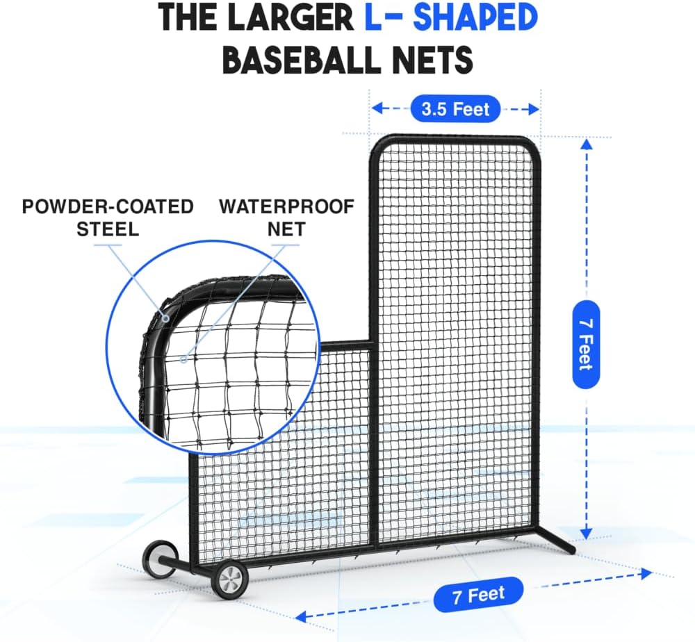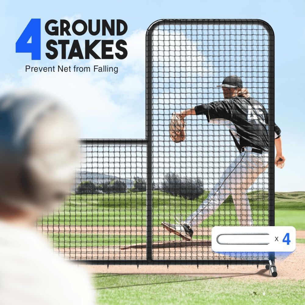 Enhance your baseball and softball pitching practice with the innovative Yes4All L Screen Net. Designed for durability, this essential training tool is ideal for pitchers and coaches, providing a reliable barrier against high-speed balls during batting practice. About our l screen baseball bounce back net: - The l screen baseball net boasts a heavy-duty powder-coated steel frame, suitable for various long-lasting uses. - The screen batting cage net is made of polyester waterproof and also includes 4 U-shaped ground stakes preventing the screen from falling. - For enhanced convenience, our l screening baseball batting cage, baseball pitching nets comes with 2 training baseballs. - Our portable rebound net baseball can be easily moved anywhere with rubber wheels and a carry bag. - Assembling portable l screen baseball is easy, allowing you to quickly set up and start enjoying your sporting time.